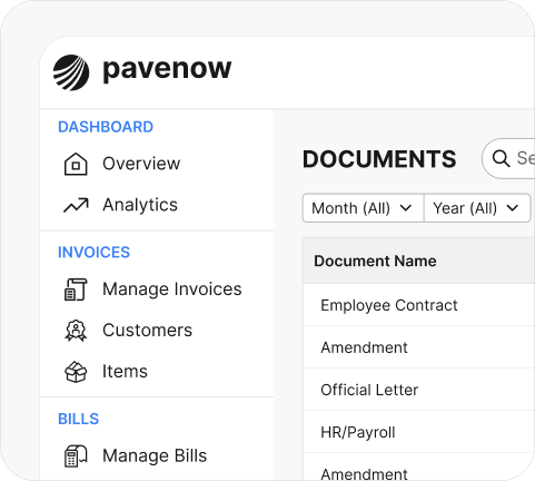 You are the CEO, sales lead, and accountant all in one. With PaveNow, you snap a photo of an invoice and the system takes care of the rest. You hand your accountant clean data and get free hours back every month.